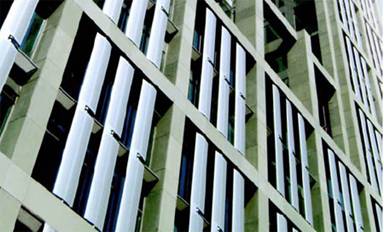●結(jié)構(gòu)特點(diǎn)——鋁合金遮陽系統(tǒng)可應(yīng)用于全玻璃幕墻的遮陽立面。
